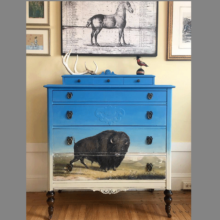 Throughout the Mediterranean, Greek Blue can be found on rustic doors, shutters and furniture often faded and distressed. It’s also a color that works well in a neoclassical interior deepened a little with dark wax.